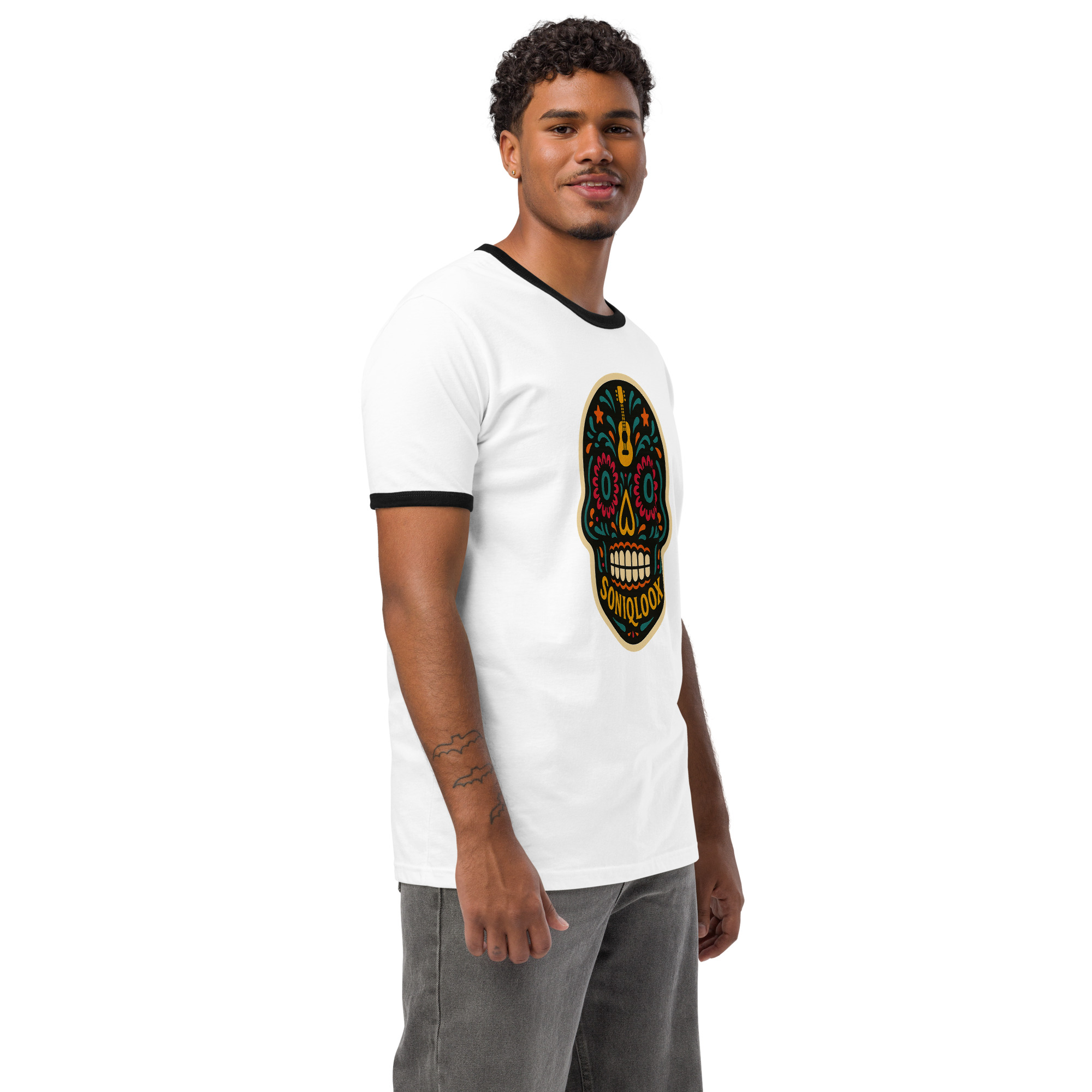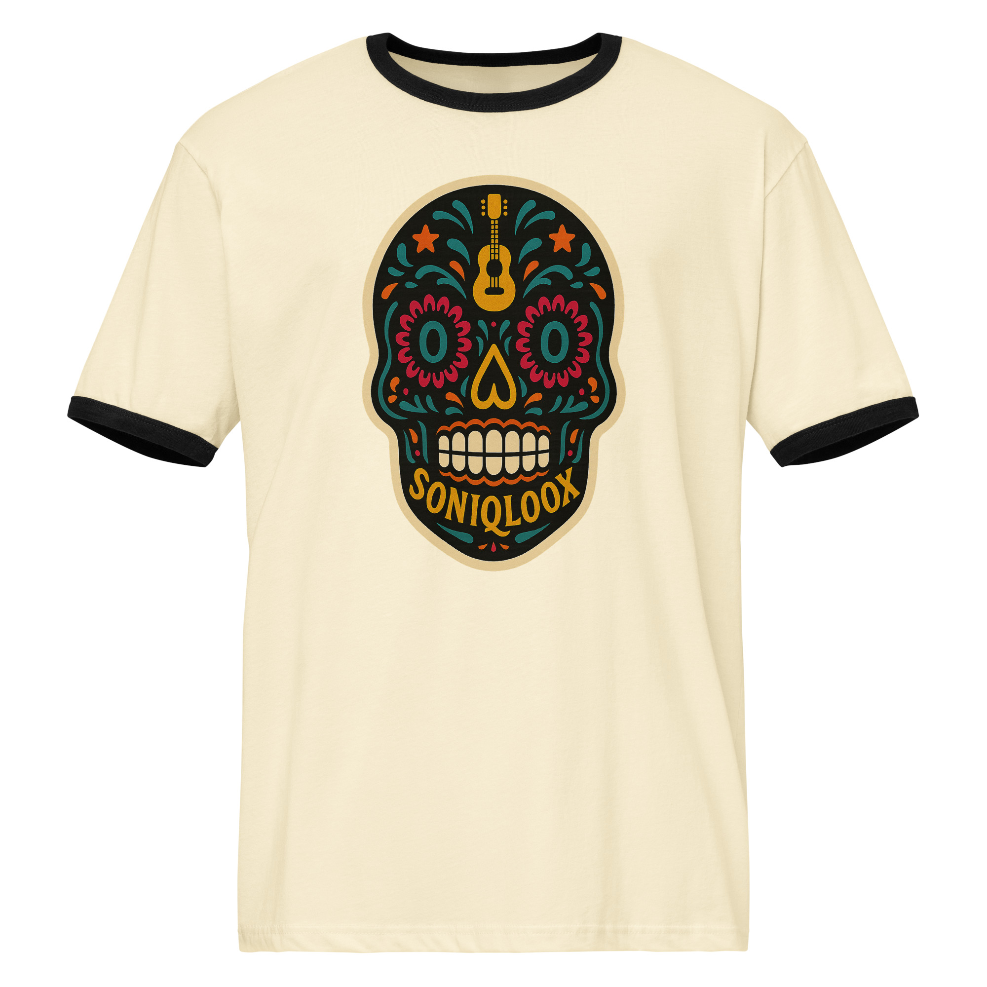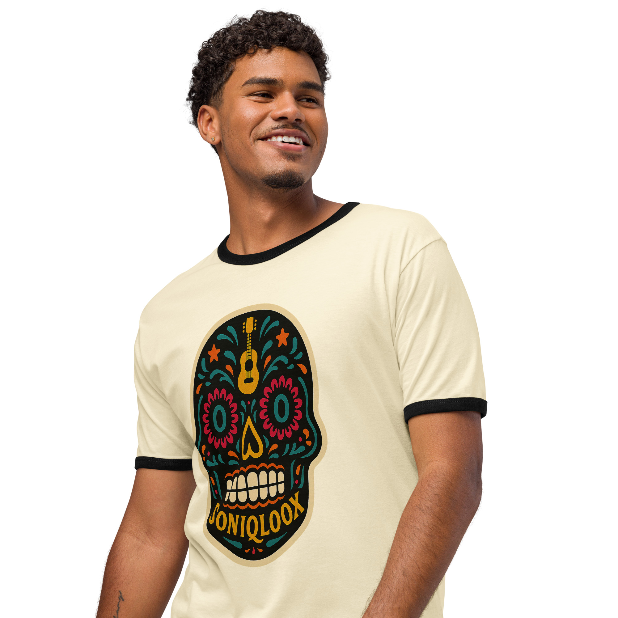 This SONIQLOOX Dia de los Muertos inspired lightweight cotton tee features a relaxed fit and contrast trims that give it a retro look. Wear it with jeans, shorts, or joggers for a laid-back everyday look.• 100% combed ring-spun cotton